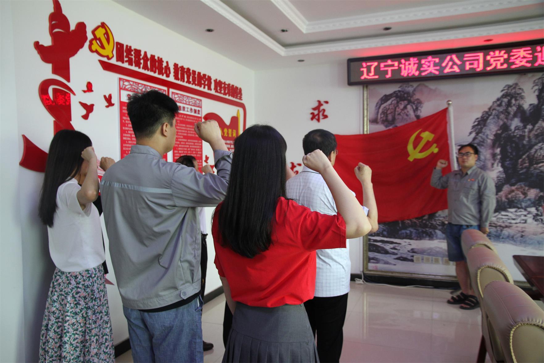 党员们在公司一楼的党建活动基地面对着党旗重温入党誓词,重忆入党初心,牢记宗旨,锤炼党性,坚定信念,在铮铮誓言中再燃奋斗激情。