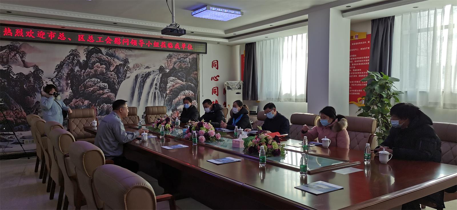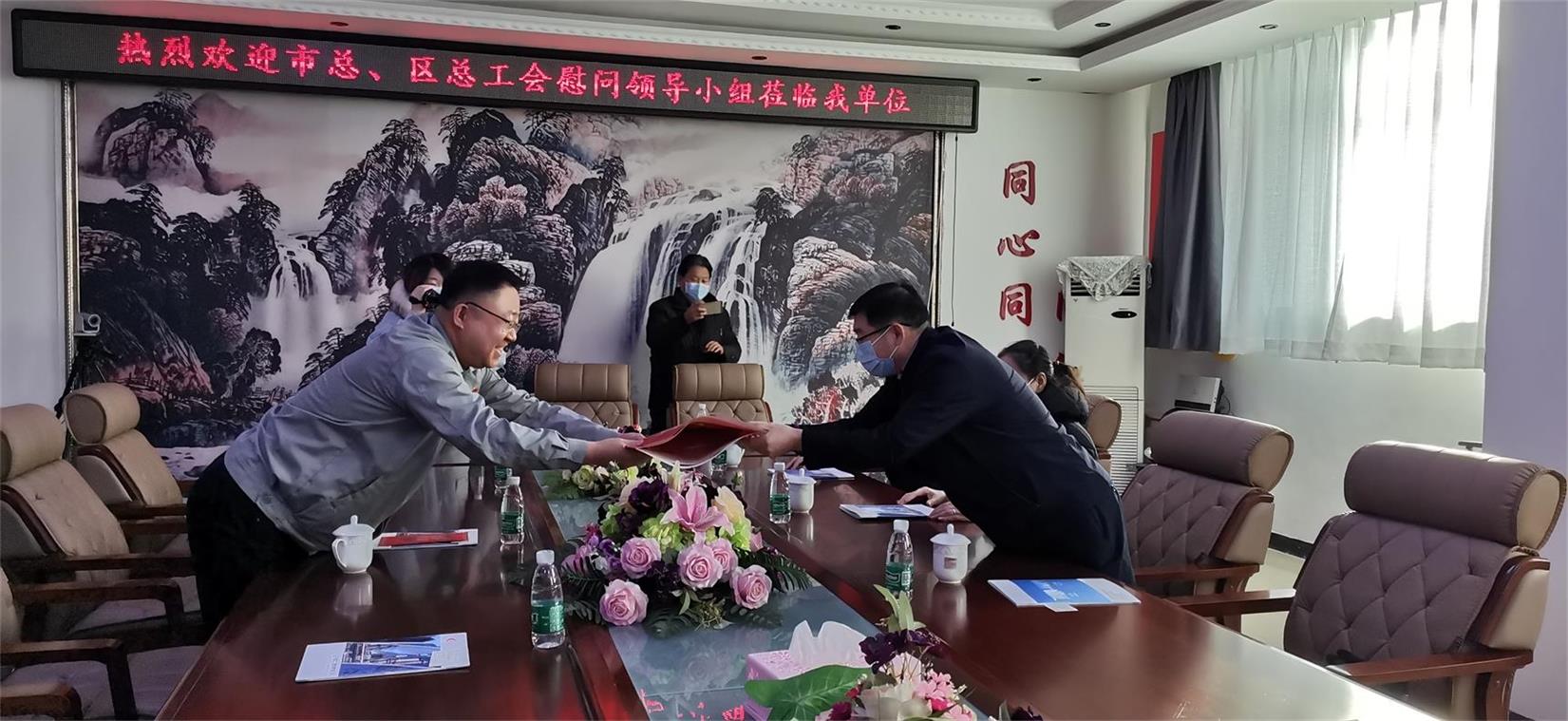 张主席听完汇报后,首先肯定了我企业工会的日常工作,以及疫情爆发之初,我企业向社会作出的突出贡献,并向我企业工会拨入送温暖资金5万元。最后,张主席还意味深长地说:感谢我企业在本行业的坚守,在本市的坚守。马书记还在春节即将来临之际,为企业赠送了春节对联。