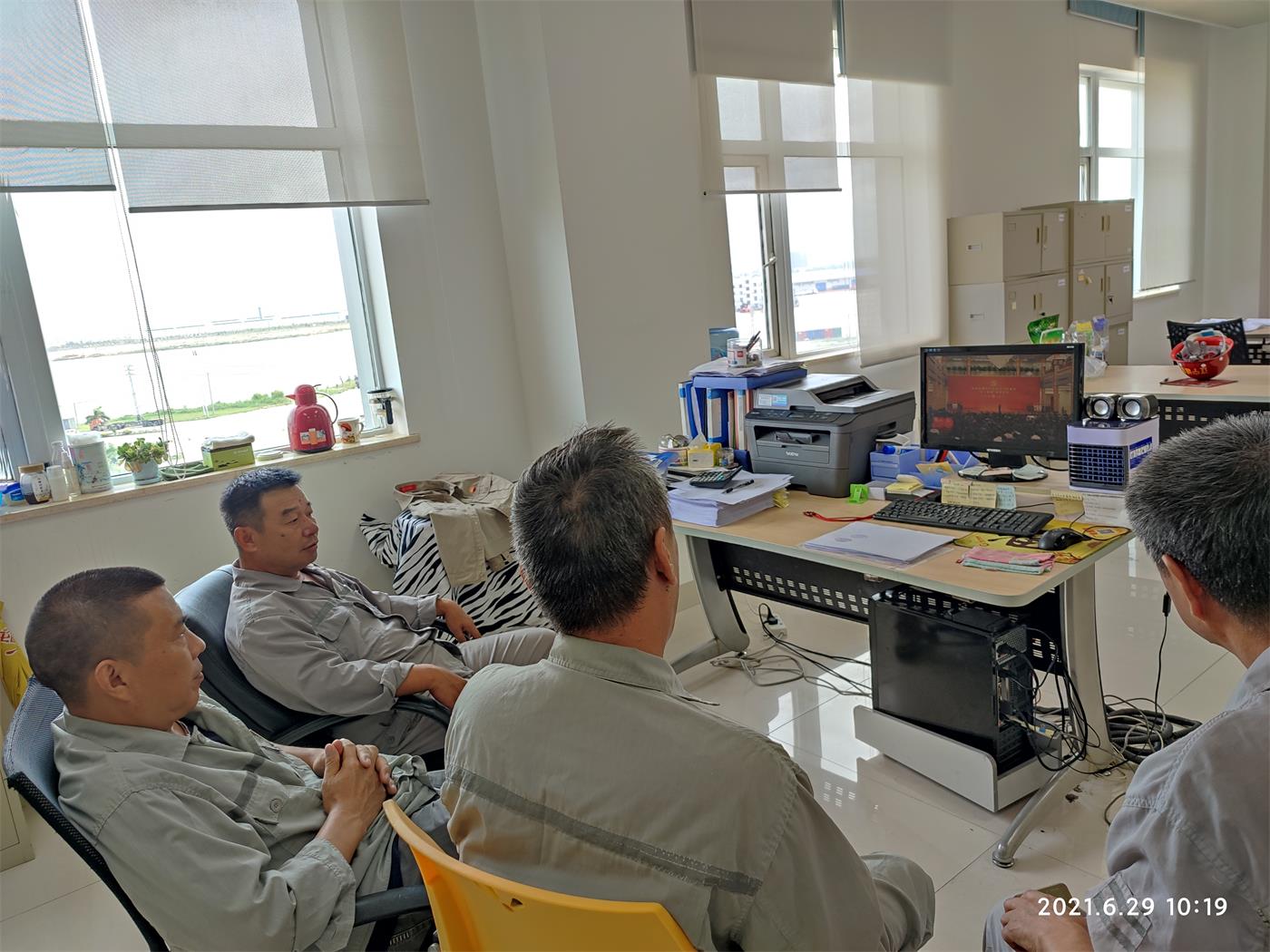 经中共中央批准,“七一勋章”颁授仪式将于629日上午10时在人民大会堂隆重举行。中共中央总书记、国家主席、中央军委主席习近平将首次颁授“七一勋章”并发表重要讲话。值此七一来临之际,辽宁诚实党委号召所有党支部、项目部由总监或项目负责人组织在线进行观看。截止到发稿时间为止,除企业机关外,广西项目部在任军经理的带领下也在线第一时间观看了颁授仪式。习总书记说:“七一勋章”的获得者就是各条战线中党员的杰出代表,在他们身上,生动体现了中国共产党人坚定信念、践行宗旨、拼搏奉献、廉洁奉公的高尚品质和崇高精神。新时代需要英雄,希望广大党员、干部牢记党的性质宗旨,牢记党的初心使命,不懈奋斗,永远奋斗,在全面建设社会主义现代化国家新征程上奋勇前进!