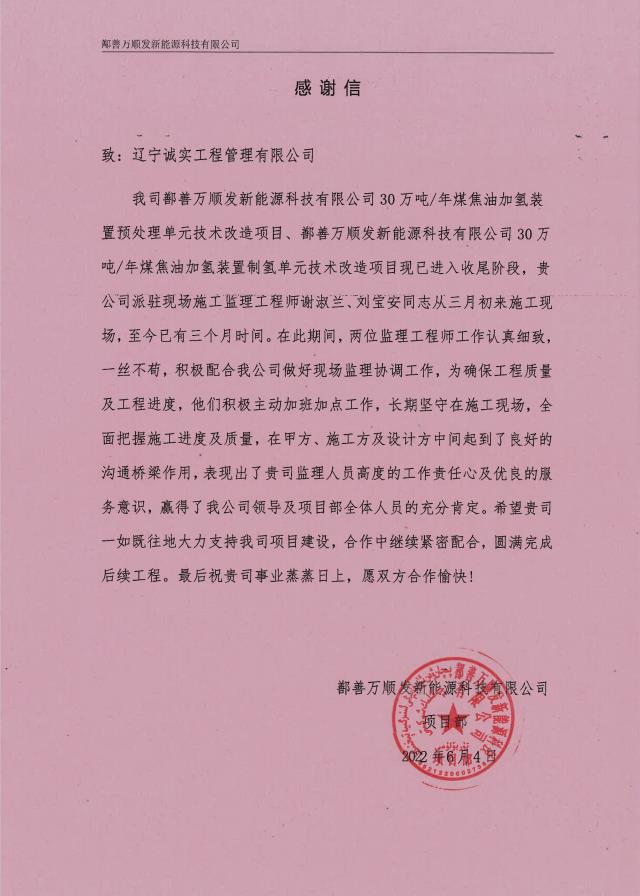 砥砺前行 不辱使命 | 项目部再次收到业主单位感谢信