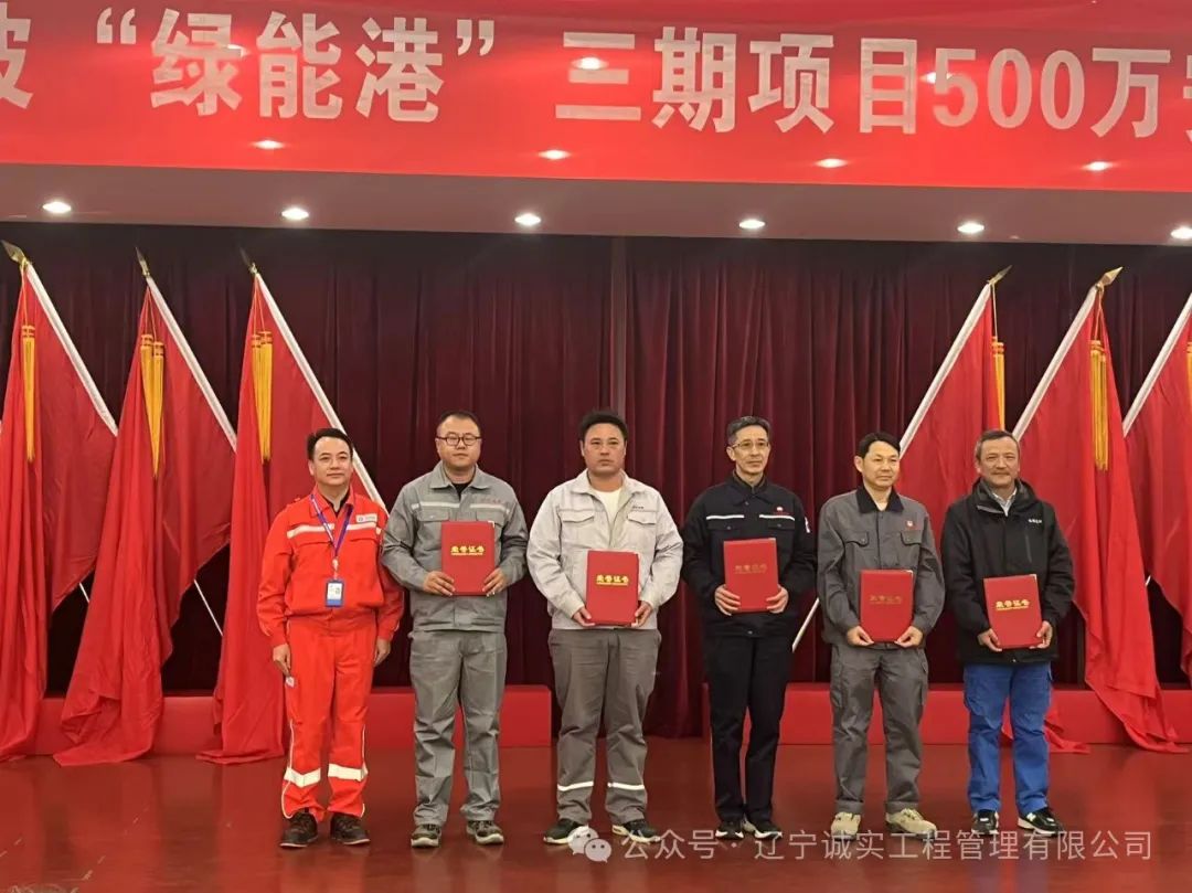 大榭石化聚丙烯项目部全体人员在克服重重困难,挥汗如雨坚守岗位,无论是高耸的构架还是闷热的受限空间,认真履行着安全、质量验收各项目岗位职责,确保项目顺利推进!还是在今日,14时30分,中海油绿能港浙江宁波能源有限公司浙江LNG三期项目场地叠标迁移项目部总监理工程师许晓明被授予项目优秀总监荣誉(图为王聪(左2)总监代领荣誉)。
