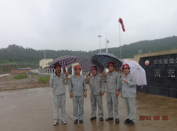 中贵压气站南充分站各监理人员雨中坚持工作并合影